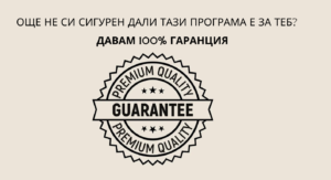 Затова моето предложение е следното – ако ти се включиш в програмата ми и взимаш ПЪЛНО участие в нея – редновна си на ВСИЧКИ седмични лекции, следваш ПРЕПОРЪКИТЕ И СЪВЕТИТЕ ми, след три месеца НЕ ВИЖДАШ резултати, ще ти върна парите, които си платил за програмата. Без да задавам въпроси. Просто и ясно – ако ти не си доволен от резултатите и от работата си с мен – аз не искам парите ти.