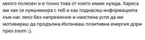 - 32 обучителни сесии с мен на живо в ZOOM (неделя 10:00-12:00 и четвъртък 19:00 – 20:30 часа)