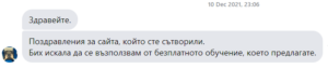 В края на курса Вие полагате финален тест. На база на постигнатите резултати получавате сертификат за преминат курс на обучение.
